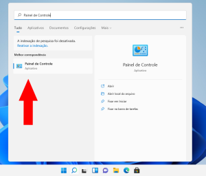Passo 01: Primeiramente é necessário utilizar a barra de pesquisa do Windows 11 e digitar “Painel de Controle” vai aparecer conforme mostra na imagem abaixo, basta clicar para abrir, pois é nessa parte que vamos encontrar as configurações que queremos.